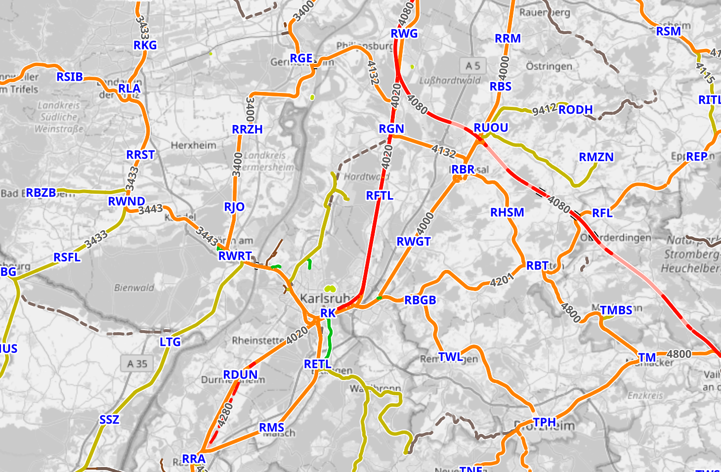 Es ist auch möglich, auf den Gleisen automatisiert zu navigieren. Natürlich reicht das nicht aus, um festzustellen, ob eine Verbindung wirklich möglich ist, aber um zum Beispiel für den Güterverkehr eine erste Abschätzung zu treffen, ob ein Transport per Bahn vielleicht möglich oder wie groß der CO₂-Ausstoß wäre, dafür reicht es allemal.